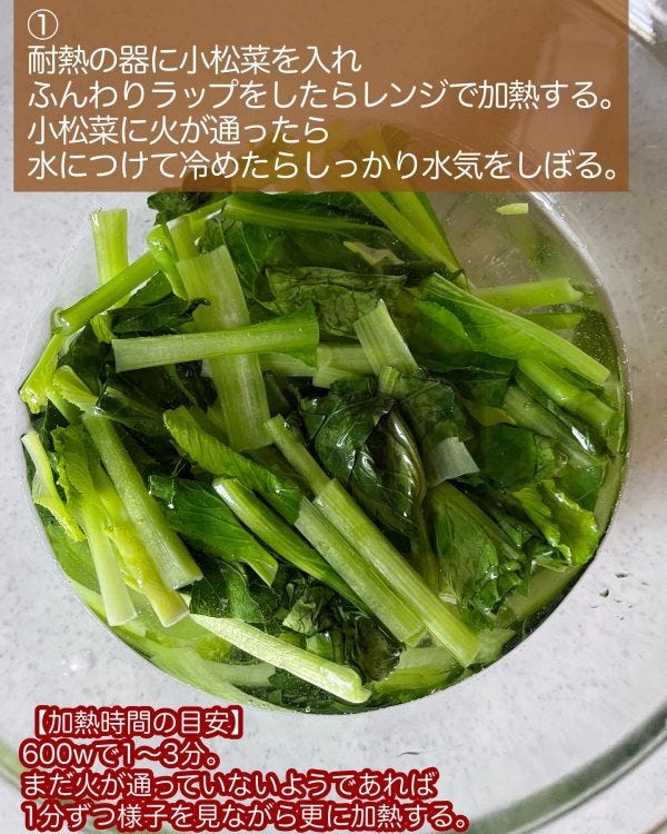 作り方①小松菜をレンジで加熱