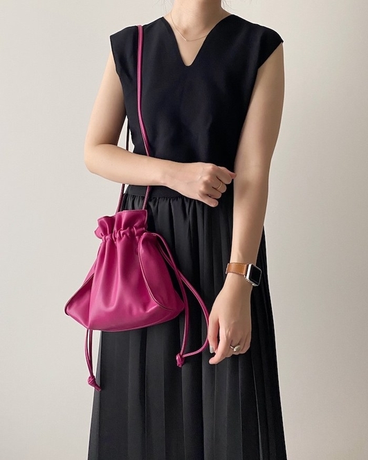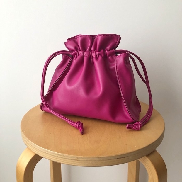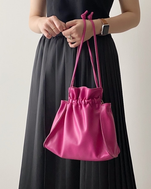 ころんとしたフォルムがキュートな、巾着タイプのミニバッグ♡