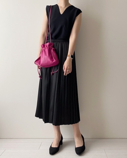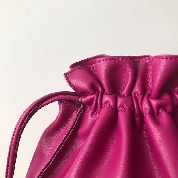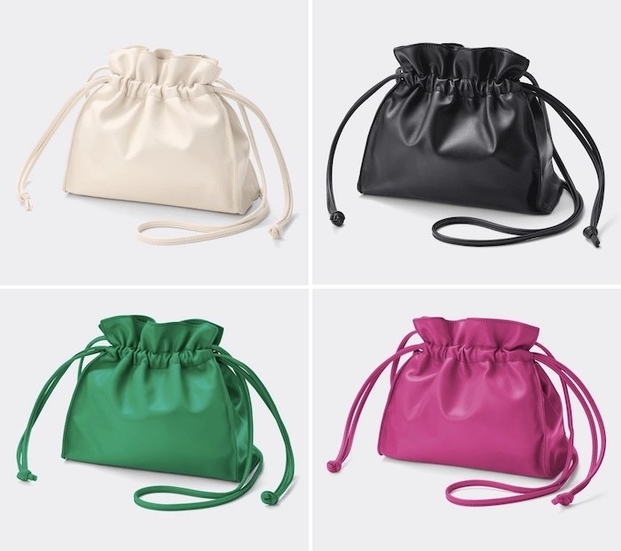 GUの「レザータッチドローストリングバッグ」は、ころんとしたフォルムと鮮やかなカラーが可愛い♡スマホ財布、リップなどの小物も入れられるサイズ感なので普段のお出かけにちょうど良いですよ〜!