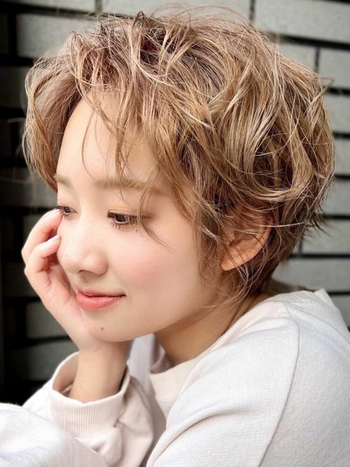パーマで動きをつけると、ショートの髪型もセルフスタイリングが簡単になりますよ。