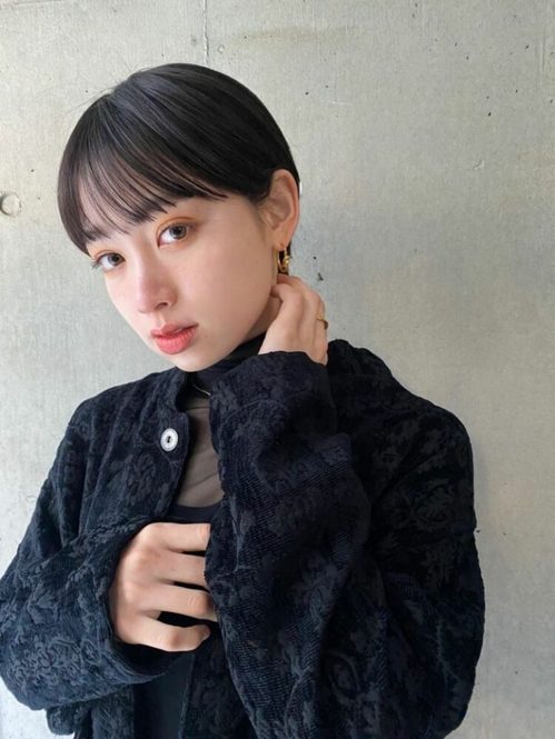 丸顔さんにおすすめの縦長シルエットのレディースショート。