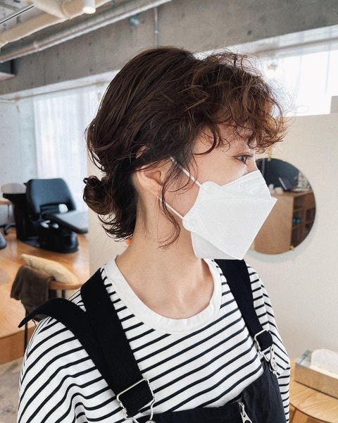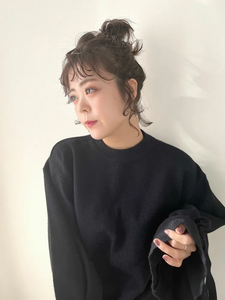 ボブの長さではなかなかアップヘアが作りづらいですが、パーマをかけていれば後れ髪もおしゃれに見えるので簡単なお団子の髪型も、おしゃれに見えますよ。
