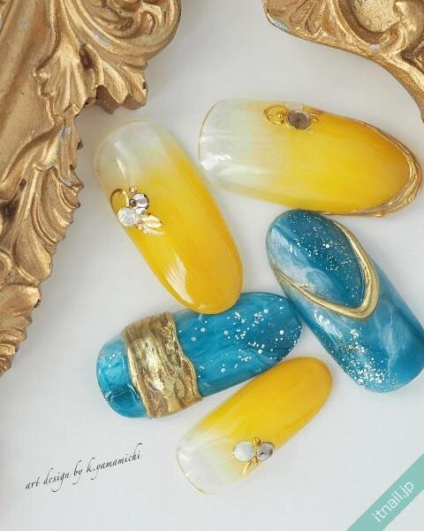 カジュアルなデザインをお好みであれば、クリアカラーをベースに、メタリックシルバーの立体的なラインをアートするデザインはいかがでしょうか。これからの季節は、ベースカラーにブルーやパープルを使ってみるのもいいですね。