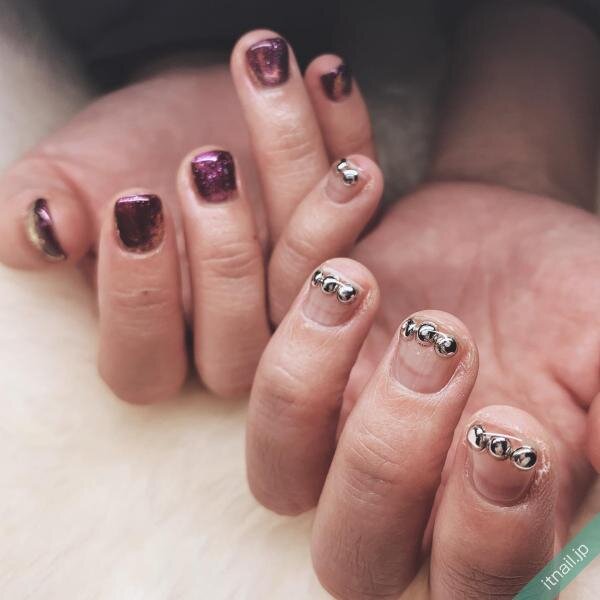 配置したスタッズの上にメタリックカラージェルやミラーパウダーを重ねて、お好みの色味に変化させるのもおすすめですよ♪