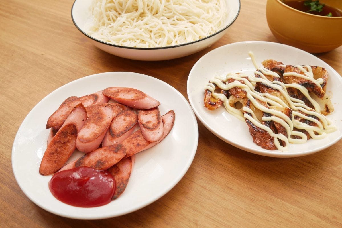 魚肉ソーセージを炒めてケチャップで食べるシンプルな料理だが...う、ウマい! 豚肉のソーセージではなくて、あっさりとした魚肉ソーセージなのがまたいい。油分も味の濃さもほどよく、主役であるそうめんを邪魔しない。