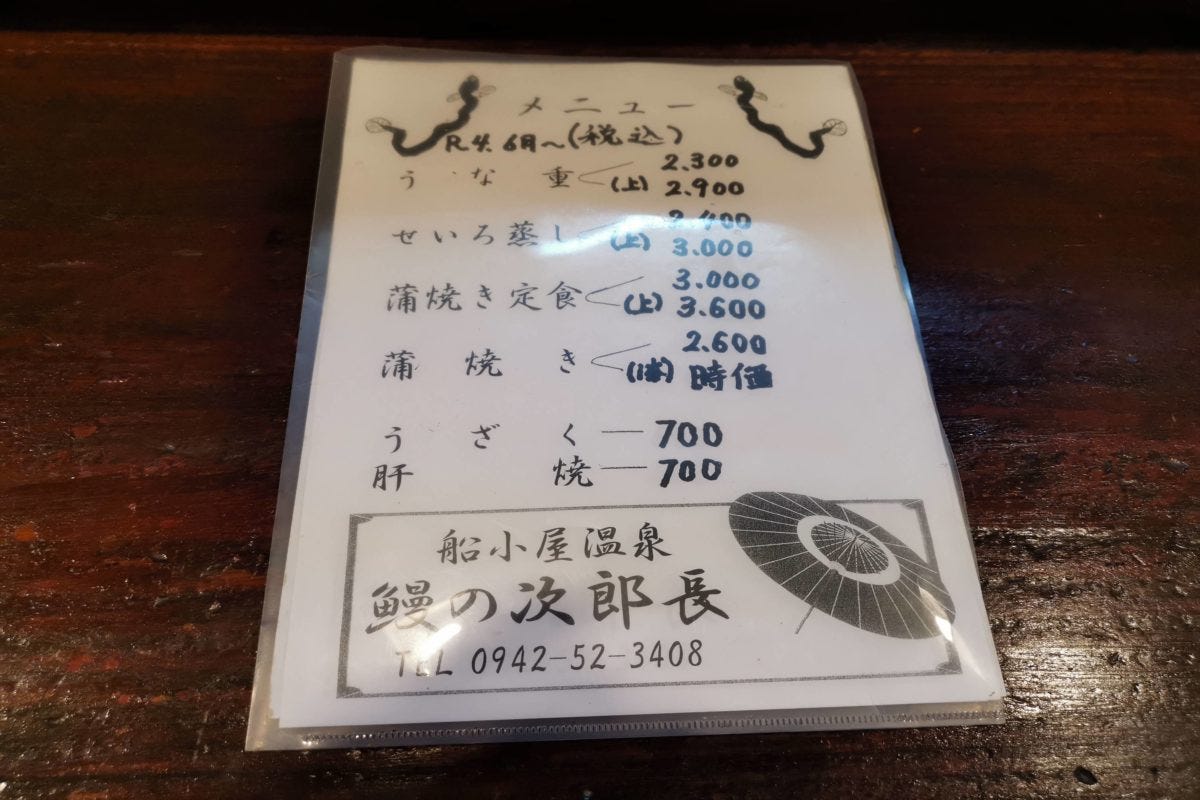 筑後地方には、その「福岡風うなぎの食べ方」を体験できる名店が多数あるのだが、ぜひオススメしたいのが、船小屋温泉にある「うなぎの次郎長」。
