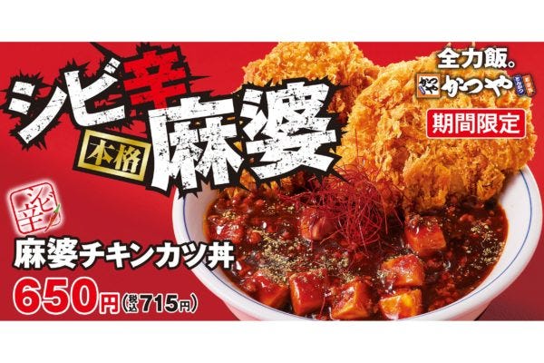 とんかつ専門店「かつや」が7月2日より、夏にぴったりな期間限定メニュー『シビ辛麻婆チキンカツ』を発売する。