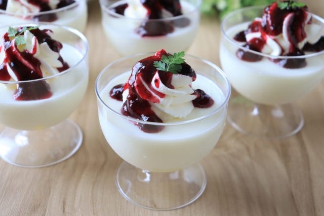 今回はナタデココと相性抜群のヨーグルトを使った簡単プリンのレシピをご紹介していきます。ジャムで作る簡単ブルーベリーソースも合わせて作っていきます。