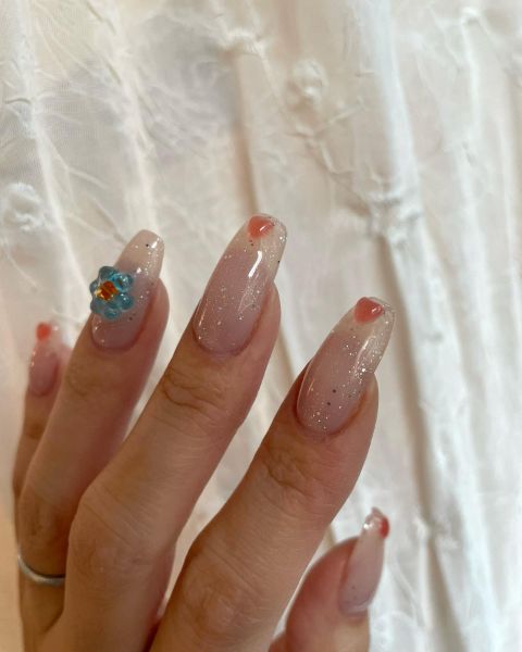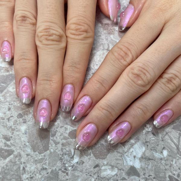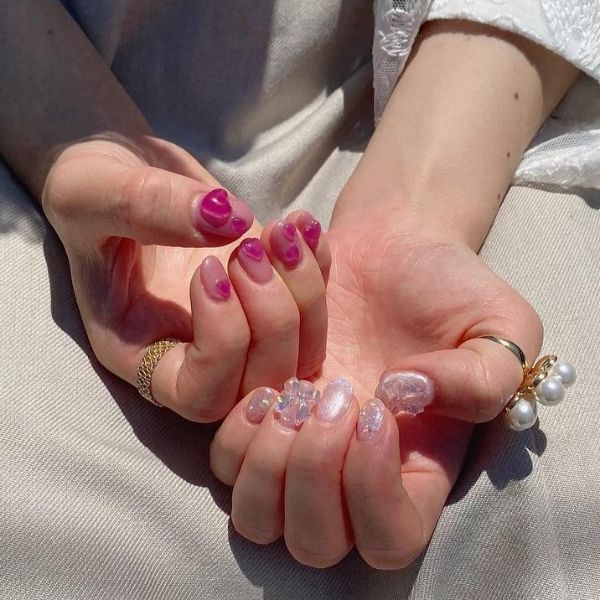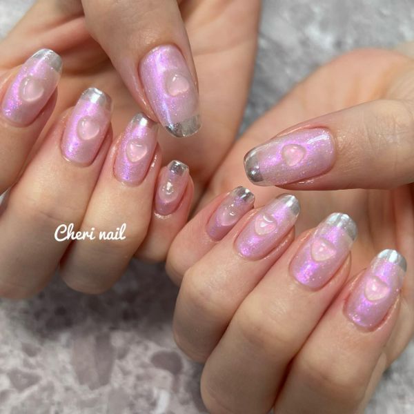 “カメレオンネイル”でこの夏特に人気なのが、紫外線で色が変わるハートや星などのパーツをワンポイントに施すネイルデザイン。
