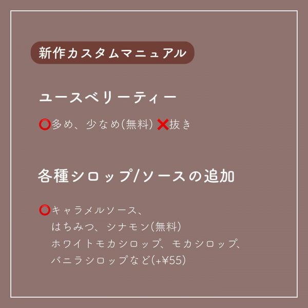 おすすめのスタバカスタムや、新作ドリンクの情報をお届けします。ぜひ、ご紹介するカスタムを試してみてください!