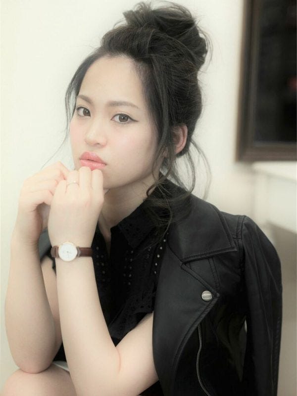 長い前髪をセンターパーツにして、思いきって額を全開にしてみましょう。