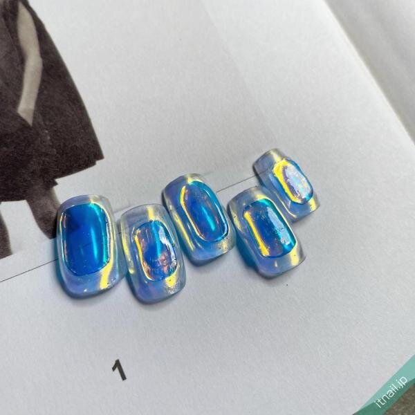 ほんのり爪の色が透ける淡いクリアブルーを主役に、濃いブルーを重ねて氷ネイルを再現していきましょう♡オーロラの輝きが、光に当たるたびにきらっと主張します!