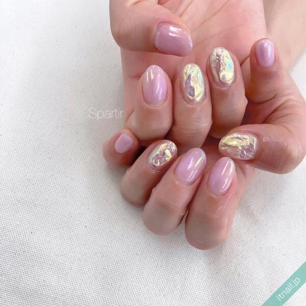 手肌の色になじむ大人可愛いくすみピンクが氷デザインにマッチ!きらっと輝く主張強めなデザインを、落ち着いた印象のピンクが受け止めます。ピンク色に塗った爪もツヤたっぷりに仕上げれば、ちぐはぐに見えませんよ。
