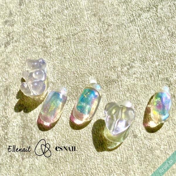 ちゅるんっとしたツヤたっぷりのクリアベースにオーロラのヴェールをかけて、氷を連想させるひんやりデザインを作ります!その上からクリアカラーを乗せて、ぷっくりとした立体的なモチーフを作り、可愛さを倍増させましょう♪ついつい視線が奪われる、氷ネイルの完成です。