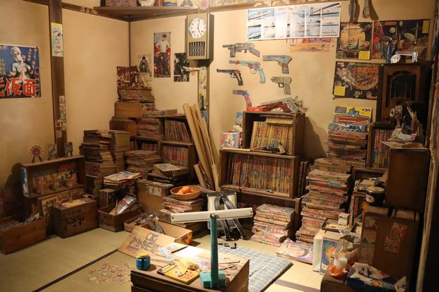 その先に広がるのは、少年時代の鈴木プロデューサーがすごした四畳半の部屋、そしてたくさんの漫画たちです。「あんなにキレイじゃないですよ、もっと雑然と色々置いてあったんです」と笑っていましたが…この量は本当にすごい!
