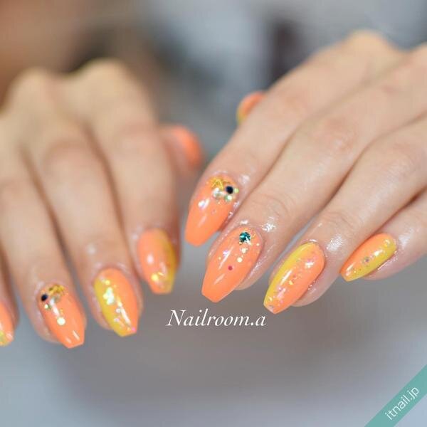 オレンジのみの縦グラデーションネイルもおしゃれですが、夏は同じくビタミンカラーのイエローを使うのもGOOD♡オレンジからイエローの自然な変化が楽しめますし、指先を見るたびに元気をくれそう!