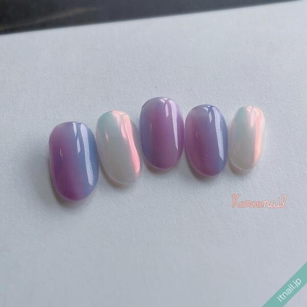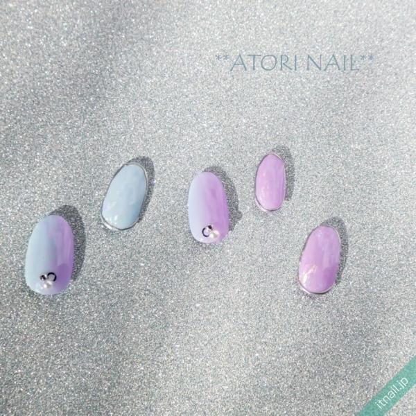 ブルーとパープルを組み合わせた縦グラデーションネイルも、大人気のデザインです。全体的に淡く、優しい色でまとめれば、爽やかに仕上がるだけでなく、透明感のある儚げな指先にすることができますよ♡