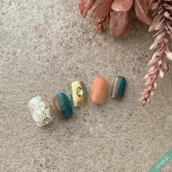 元気なオレンジカラーを大人っぽくしたいときは、少しくすみ感のある色やベージュを入れた縦グラデーションにするといいですよ!ビタミンカラーでも落ち着いた色合いになり、大人向けの夏ネイルになります♡