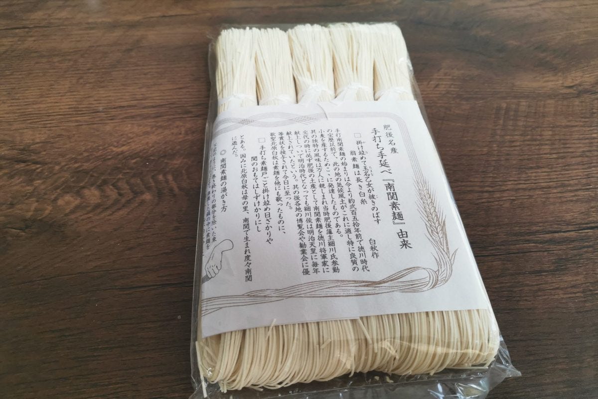 そのそうめんとは、南関あげでも知られる熊本県北部・南関町で製造される「南関そうめん」だ。明治中期には200を超える製麺所があったそうだが、現在は10軒ほどに減少しつつも、その伝統的な美味しさは受け継がれている。