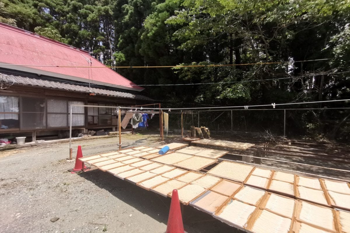 綾田製麺所のそうめんは天日干しが特徴で、暖かな熊本の太陽を浴びて味わいを引き出している。