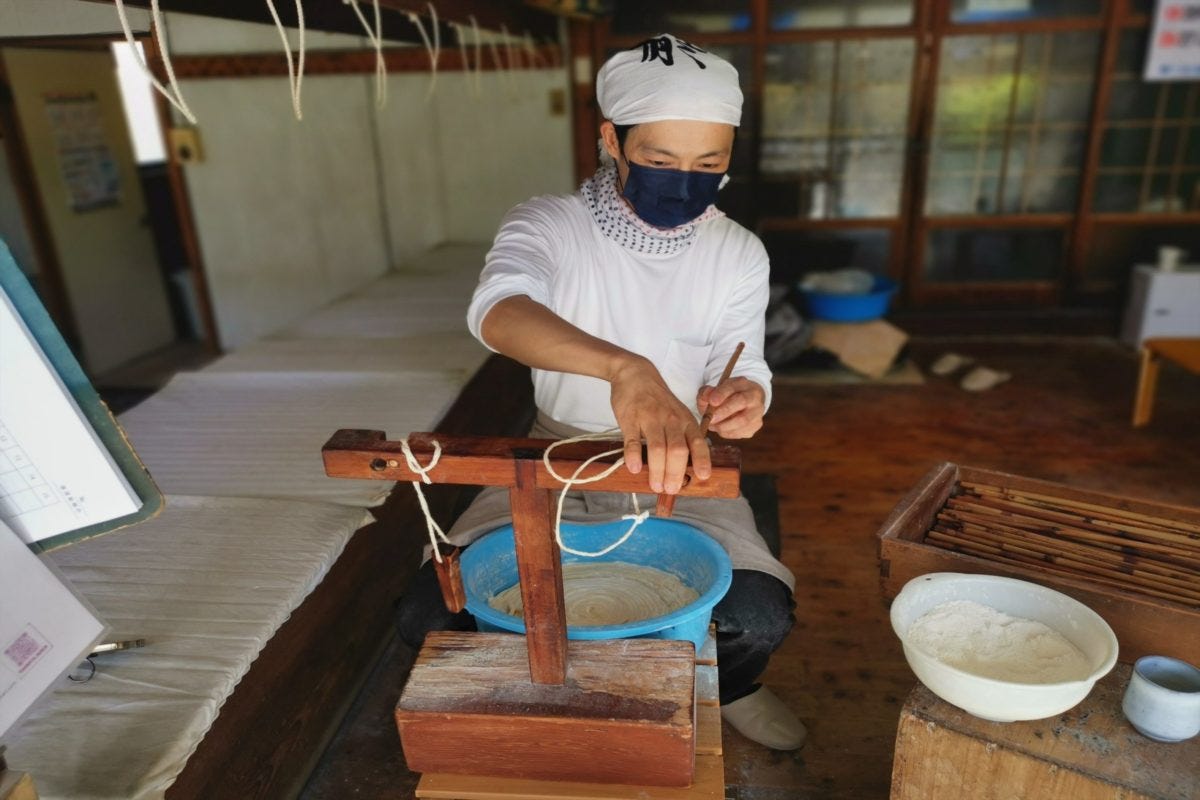 若いご主人の製麺作業を見学させてもらったのだが、その流れるような手さばきはまさに職人芸。