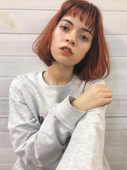 外ハネスタイルが大ブーム中♡赤みのある暖色カラーが程よく甘さをプラス。
