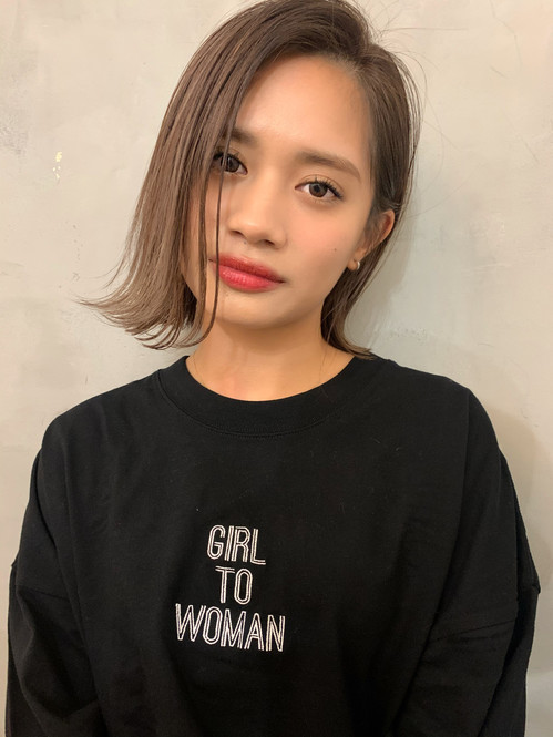 かき上げ前髪で大人な魅力たっぷりのワンレンボブ。実はカジュアルなファッションとの相性もよく、透明感とピュアさも抜群。