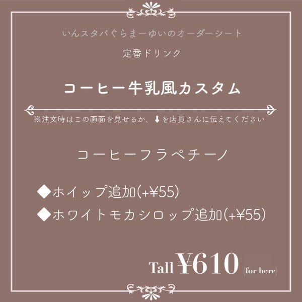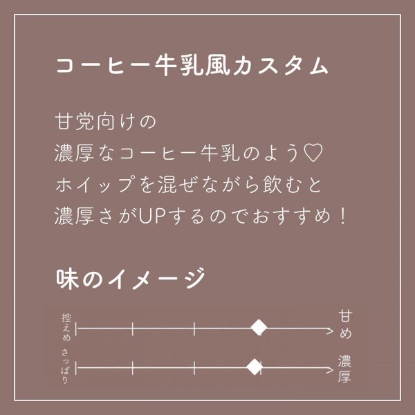 続いてお届けするのは、甘党さん必見!まるで「コーヒー牛乳」な激推しカスタムです。
