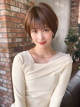 ショートとボブの中間くらいの髪型で、襟足が長めなのがポイント!