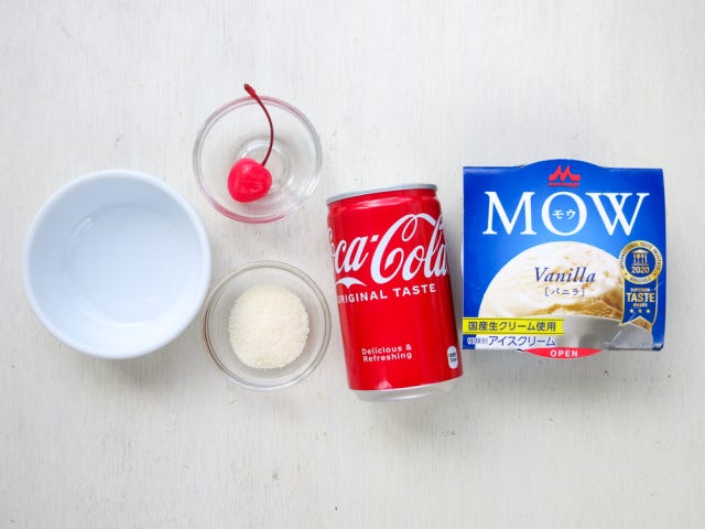 懐かしの喫茶店でおなじみコーラフロートをゼリーで!口に入れるとシュワッと弾けるコーラのゼリーに、バニラアイスをオン。コーラを注ぐと泡がもこもこ!お子さまもきっと大喜びです!