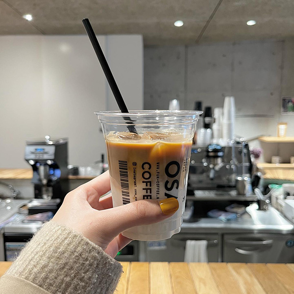 スペシャルティーコーヒーをはじめ、さまざまなドリンクを提供するOSA coffee。カフェラテは、ミルクの甘さを生かした飲みやすい味で、コーヒーの苦味が苦手な人にもおすすめなのだとか。
