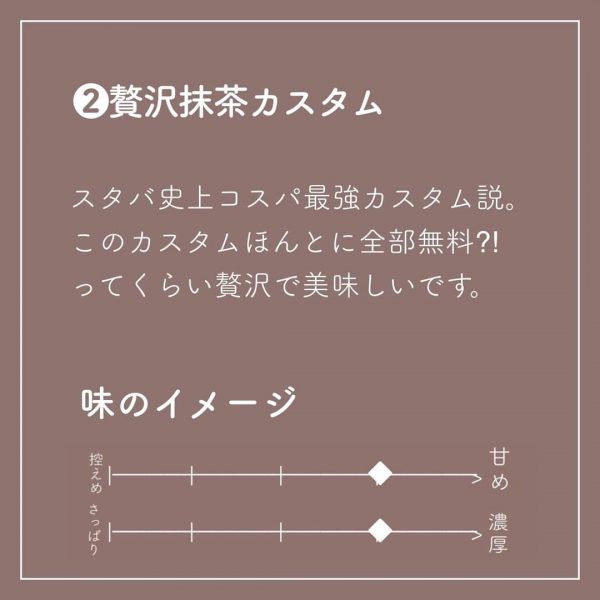 おすすめをもっと知りたい!という甘党さん向けのカスタムをご用意しましたので、ぜひお試しくださいね◎