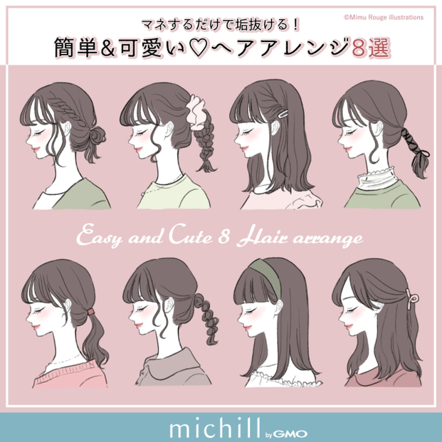 不器用だからヘアアレンジができない…今回はそんな人に絶対マネしてほしい、簡単にできる可愛いヘアアレンジのやり方をご紹介します。ゴムで結んだり、毛束をねじったりするだけでOK!分かりやすいイラストを見ながら、早速チャレンジしてみましょう♪