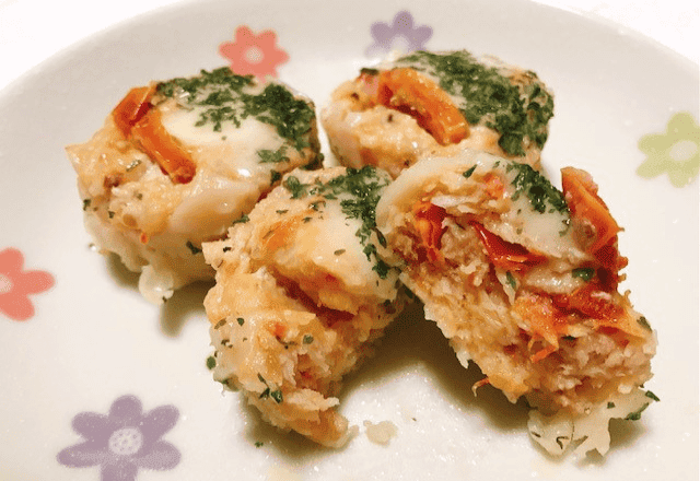 見た目の華やかさから、パーティーシーンなどでも活躍しそうな『トマトとモッツァレラチーズの鶏焼売』。