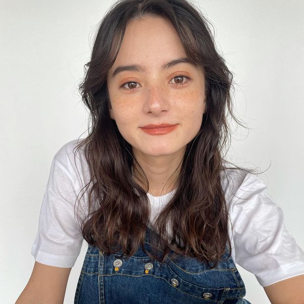 ヘアアイロンでカールをつけた後は5秒ほど手の中で髪の毛を冷ましておきましょう。重力でも多少伸びてしまうので、下から包み込むように手のひらの中に収めます。
