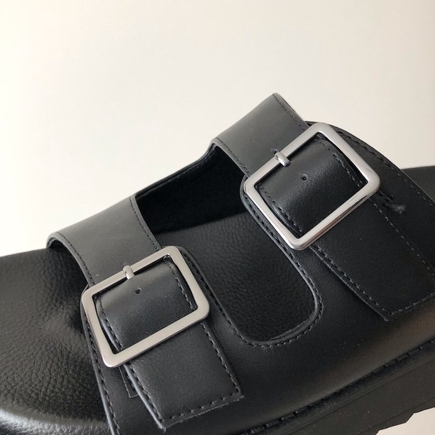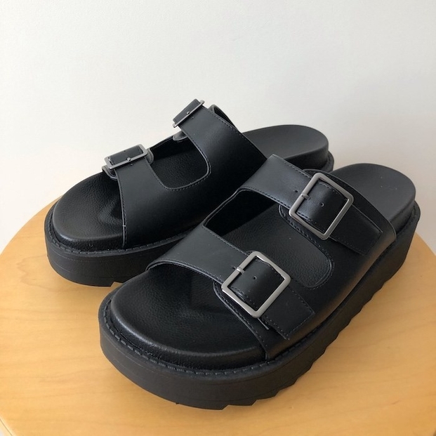 それがこちらの「ダブルストラップコンフォートサンダル」お値段は2990円でした。