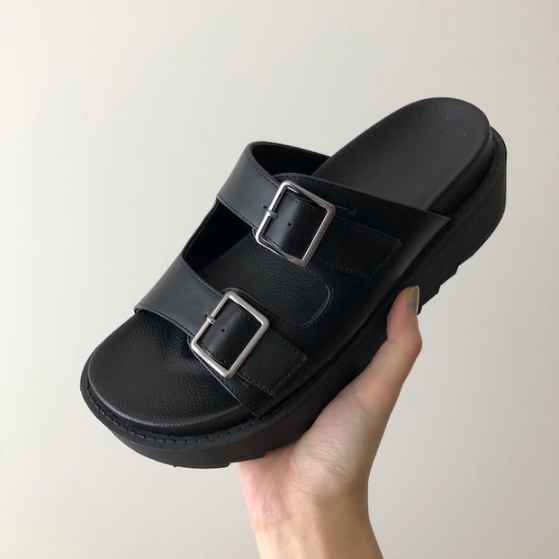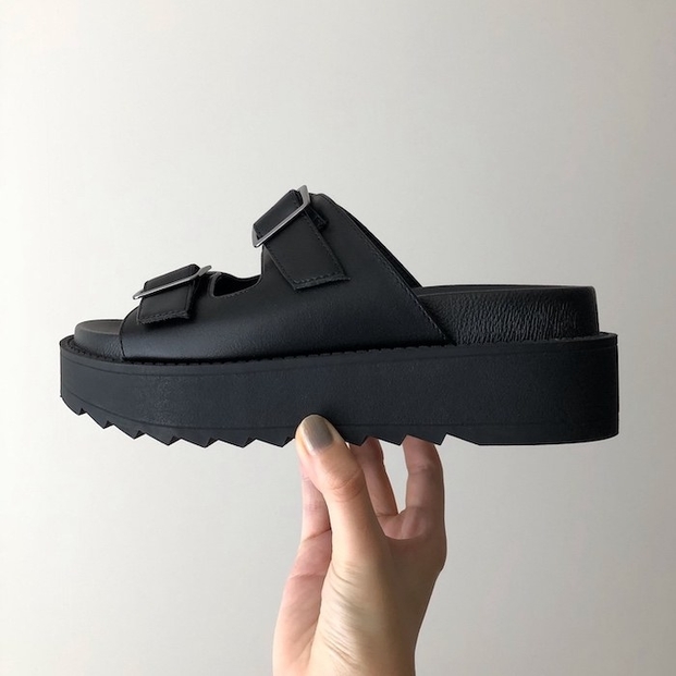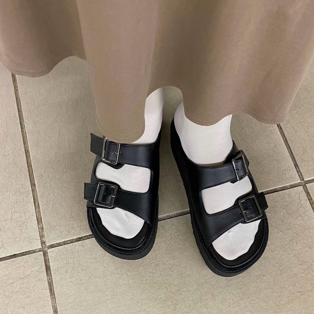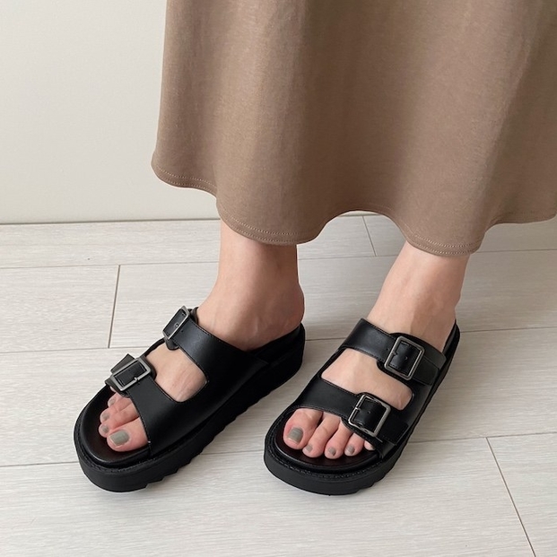 GUの「ダブルストラップコンフォートサンダル」は、厚みのあるボリュームソールが今っぽくてオシャレ♡夏は素足で、秋になったら靴下を合わせてロングシーズン活躍してくれます!