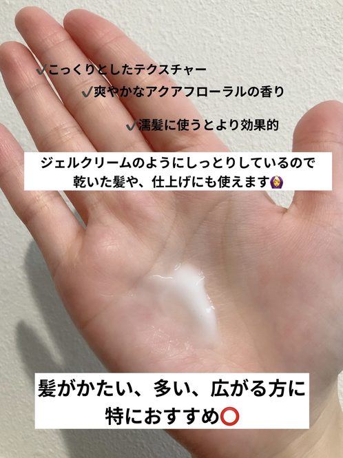 トロっとなめらかなテクスチャーが特徴。高純度のオリーブスクワラン配合で、髪の油分と水分のバランスを整えダメージを補修し、ツヤ髪へ導きます。