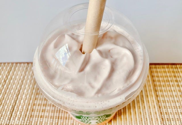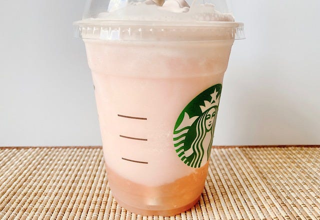 スターバックスの「桃MORE フラペチーノ」にホワイトモカシロップを追加したドリンクをご紹介しました。