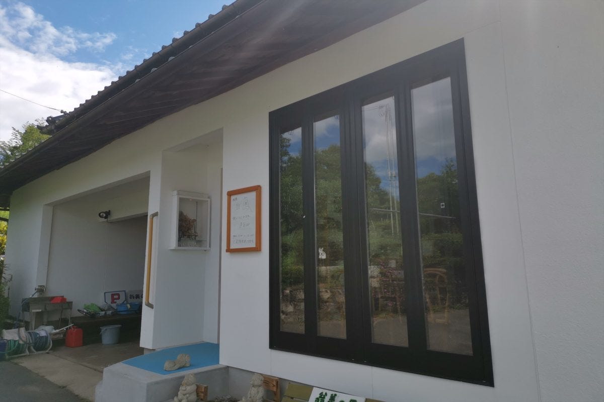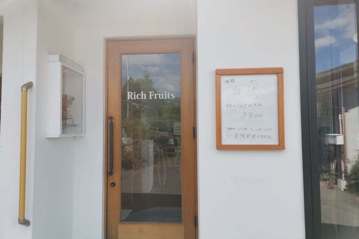 そのかき氷店は、岡山空港からほど近い場所にある「Rich Fruits」。ここは果樹園が運営している店で、小高い丘の農園の上に店舗がある。