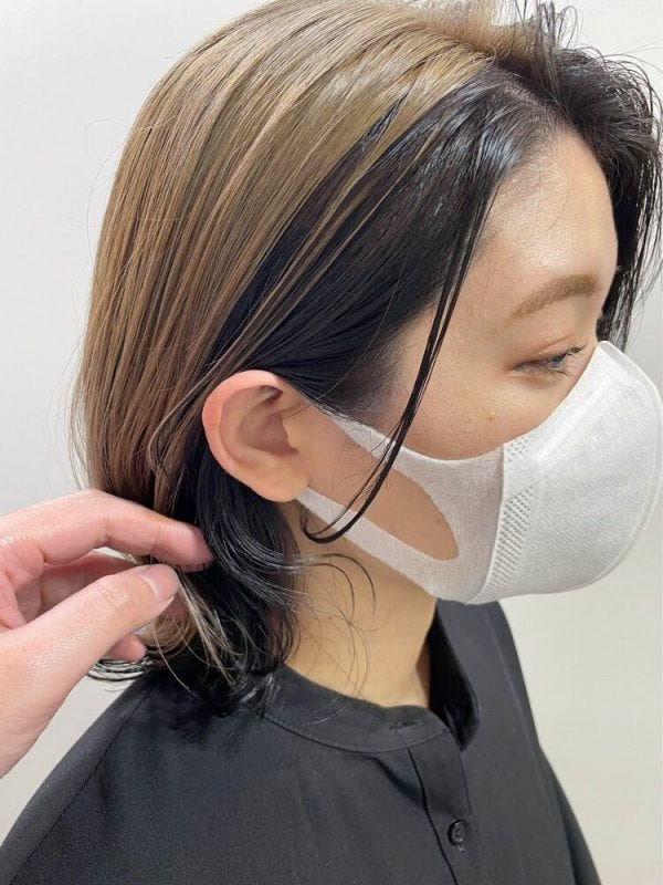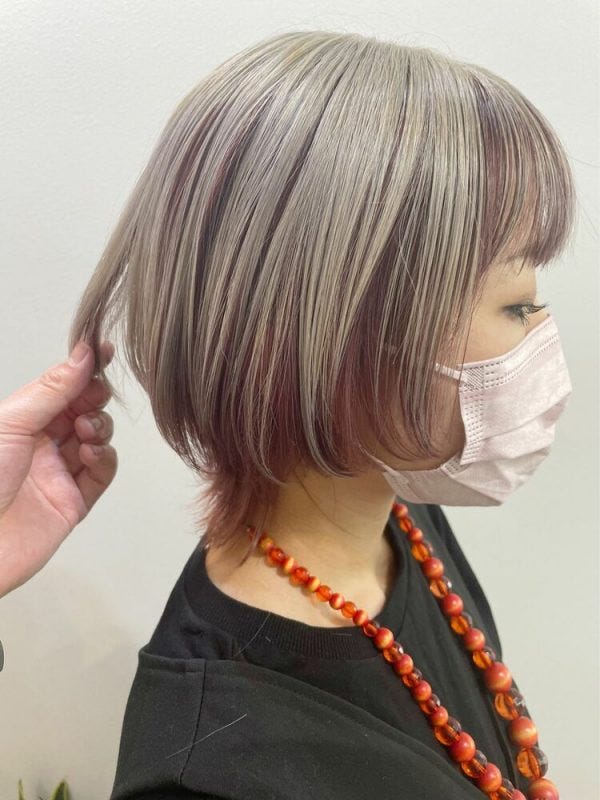 正面から見たときに毛先や首のあたりに暗めのインナーカラーが見えることで、顔まわりが引き締まって見えるのが嬉しいですね。