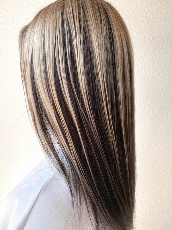 黒髪が見える範囲が大きいので、表面全体にカラーを入れたアンブレラカラーよりも挑戦しやすくて人気のヘアスタイルですよ。