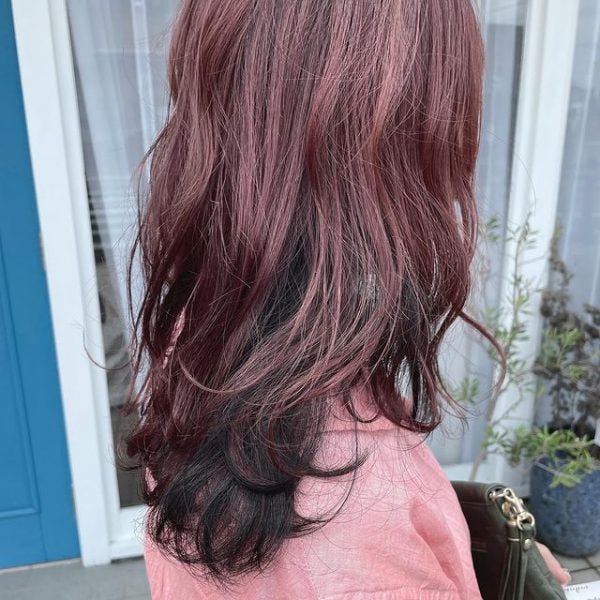 トレンドのピンク色もアンブレラカラーとして暗めのインナーカラーと組み合わせるのは、挑戦しやすいヘアスタイルですね。