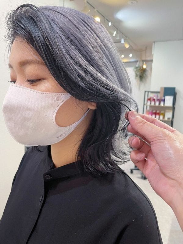 寒色系の髪色も、内側の黒髪が透けて見えることで深みのある大人っぽいカラーに見せることができますよ。