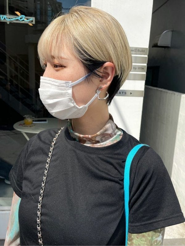 ヘアアレンジが難しいショートヘアも、アンブレラカラーなら耳掛けアレンジでインナーのブリーチなしの黒髪を出すだけでカッコよさが引き立ちますよ。