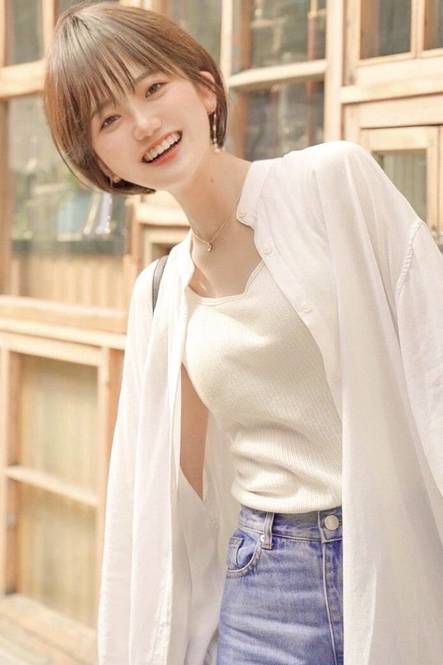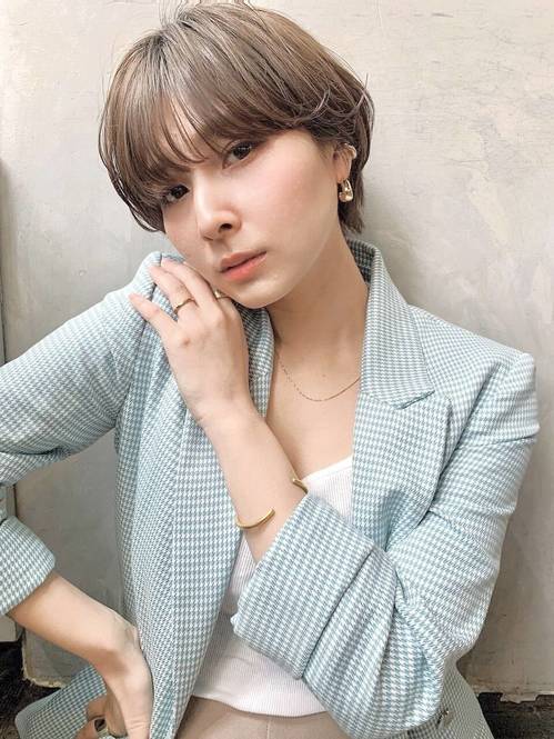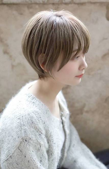 トップから丸みを出したマッシュレイヤーショートは、大人女子におすすめの髪型。