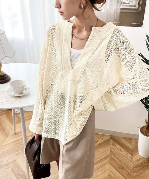 Classical Elf(クラシカルエルフ)の「総レースカフタンオーバートップス」は、ネックラインがすっきり痩せ見えを叶えるカフタントップス。