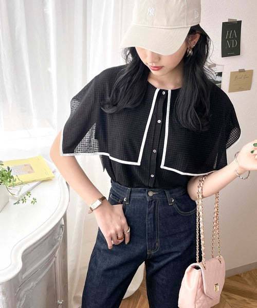 Classical Elf 【MILY BILET】大人のロマンティック。配色ビッグカラーシアーノースリーブブラウス