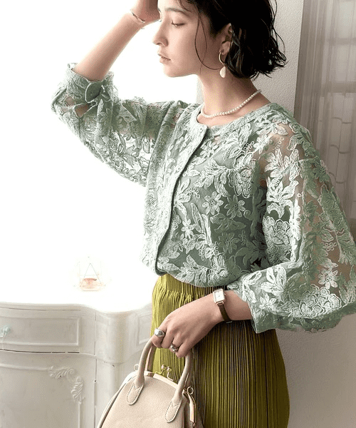 繊細な花の刺繍と透け感が、コーデにフェミニンな雰囲気をプラスするアイテムです。