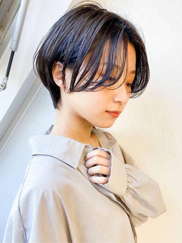 黒髪ハンサムショートはそのころんときれいなフォルムから頭の形をきれいにみせてくれるので、絶壁な大人女性にもおすすめですよ。